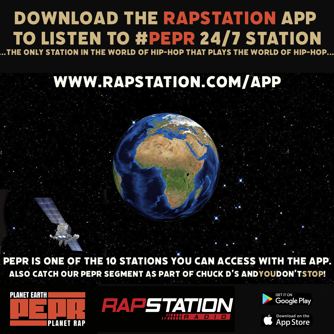 PEPR - The only station in the world of Hip-Hop that plays the world of Hip-Hop Hip-Hop culture and Rap music as part of it are global. For years, this has been entirely uncontroversial statement and true on all accounts. Despite the consensus on the spread of the culture, the rest of the world, outside of North America, has been often reduced into its consumers. So when people say, Hip-Hop is worldwide, what they often actually mean is that mainstream, mostly major label top 40 rap artists are listened to across the planet. That is true, but it is not the whole truth. It is only a very small part of it. Planet Earth Planet Rap (PEPR) is part of Chuck D’s And You Don’t Stop! radio show and RAPstation operation and its purpose is to explore and celebrate the full rap map from all continents and in whatever language it reaches us. We acknowledge the global culture and the people in it as participants, not just consumers. PEPR is curated and hosted by Mikko Kapanen and Amkelwa Mbekeni who have years of experience from radio in different countries and continents and produced by Gia’na Garel. On Twitter and Instagram you can find PEPR with the hashtag #PEPR and with the handles @PEPRradio. You can also contact us [email protected]