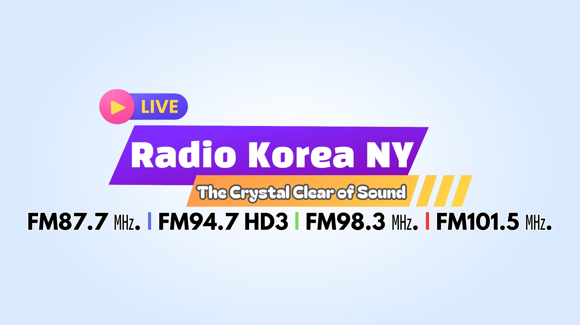 Radio Korea NY | 라디오 코리아 뉴욕 [평일] ▶ 아침앤뉴스 (진행: 송지영) [07:00~09:00] ▶ 출발새아침 (진행: 임은숙) [09:00~11:00] ▶ 생활정보 (진행: 박미정) [11:00~12:00] ▶ 정오뉴스 (진행: 김지원) [12:00~13:00] ▶ 클래식 클라우드 (진행: 장효종) [13:00~15:00] ▶ 으라차차 (진행: 최락경) [15:00~17:00] ▶ 뉴스FM (진행: 손윤정) [17:00~18:00] ▶ 뢰디오 뢰디오 (진행: 지민리) [18:00~20:00]