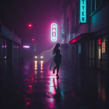 City lights blur through the rain